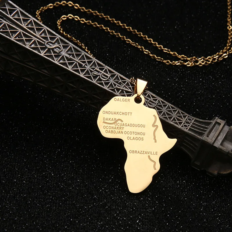 Best 4 Color Trendy Africa Map Shape Pendant Necklace Women's Fashion Jewelry Personalized Alloy Metal S