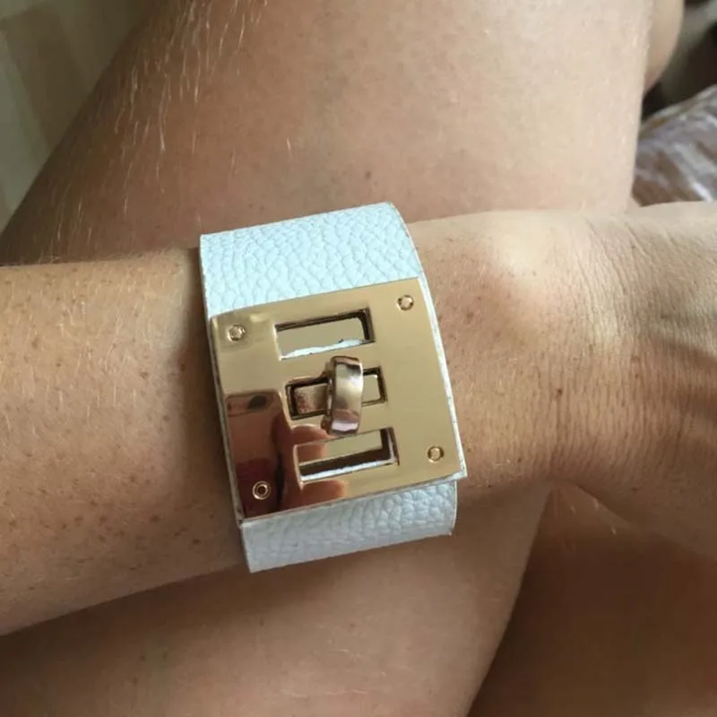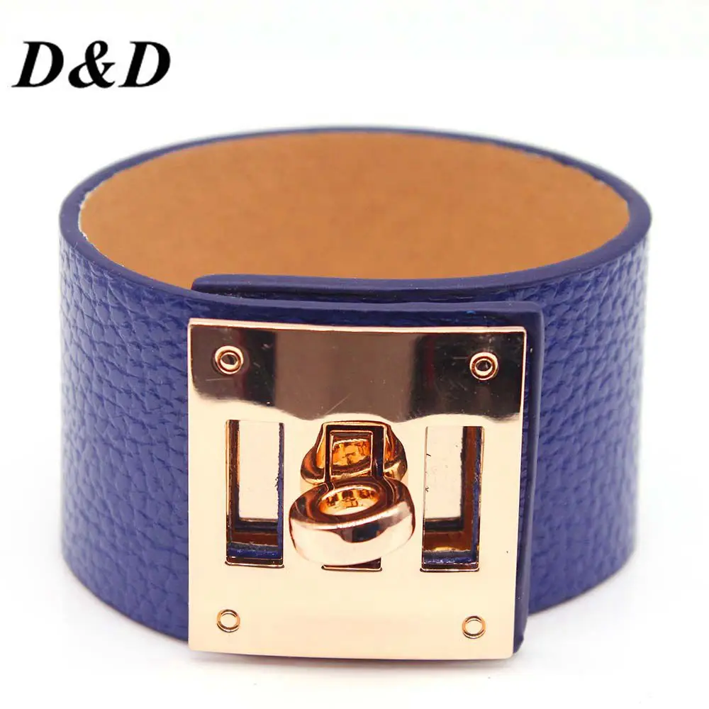 Promo D&D European Fashion Punk Wide circular gold Leather Bracelets & Bangles for Women Cuff Bracelet St