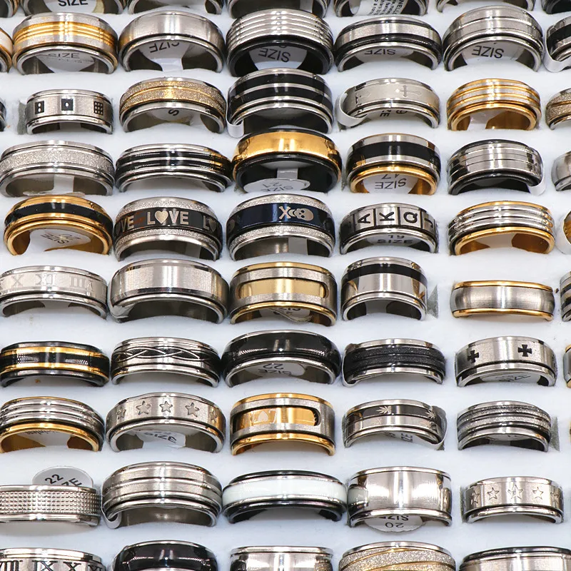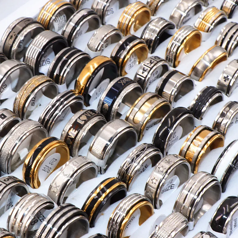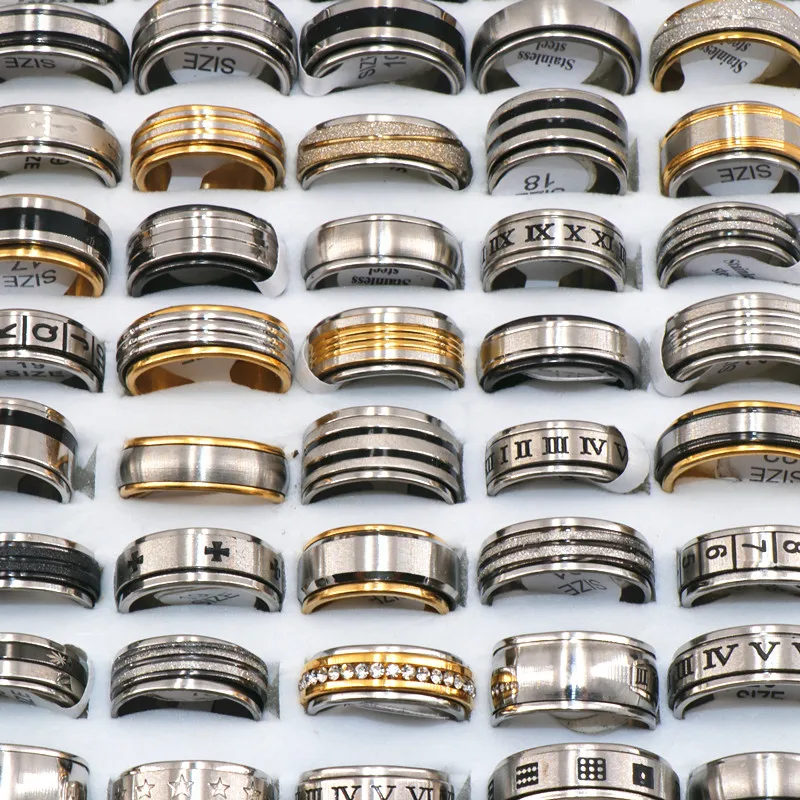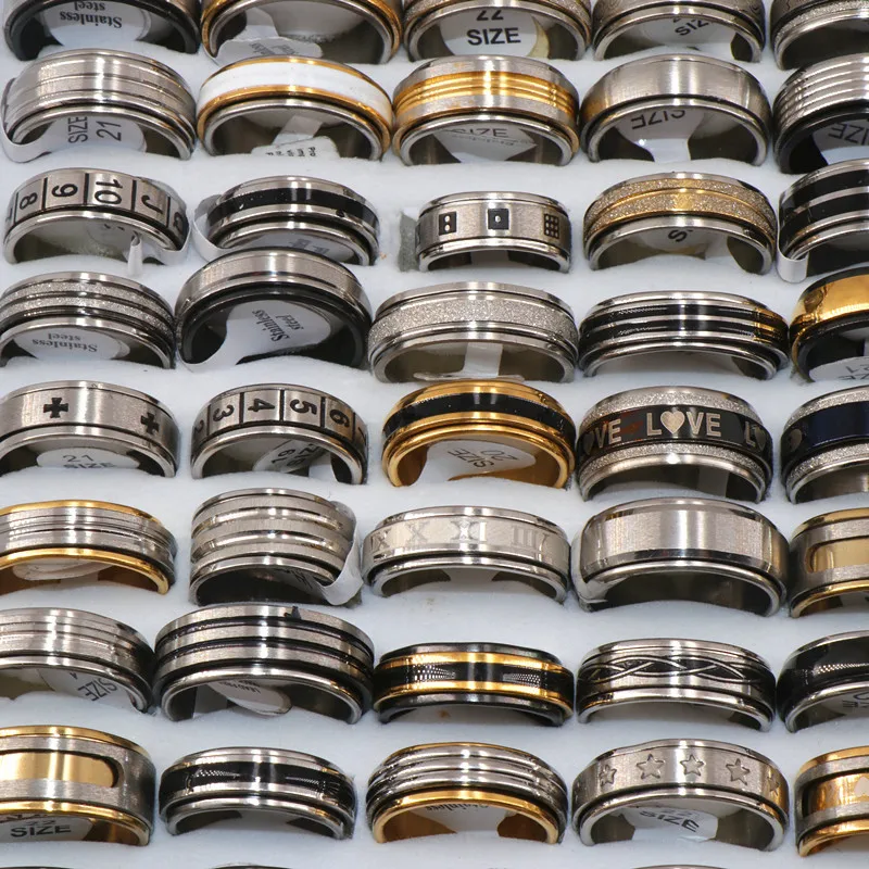 Best Fashion 36pcs/lots Mix Style Spinner Stainless Steel Rings For Women & Men Jewelry Rotatable Band R