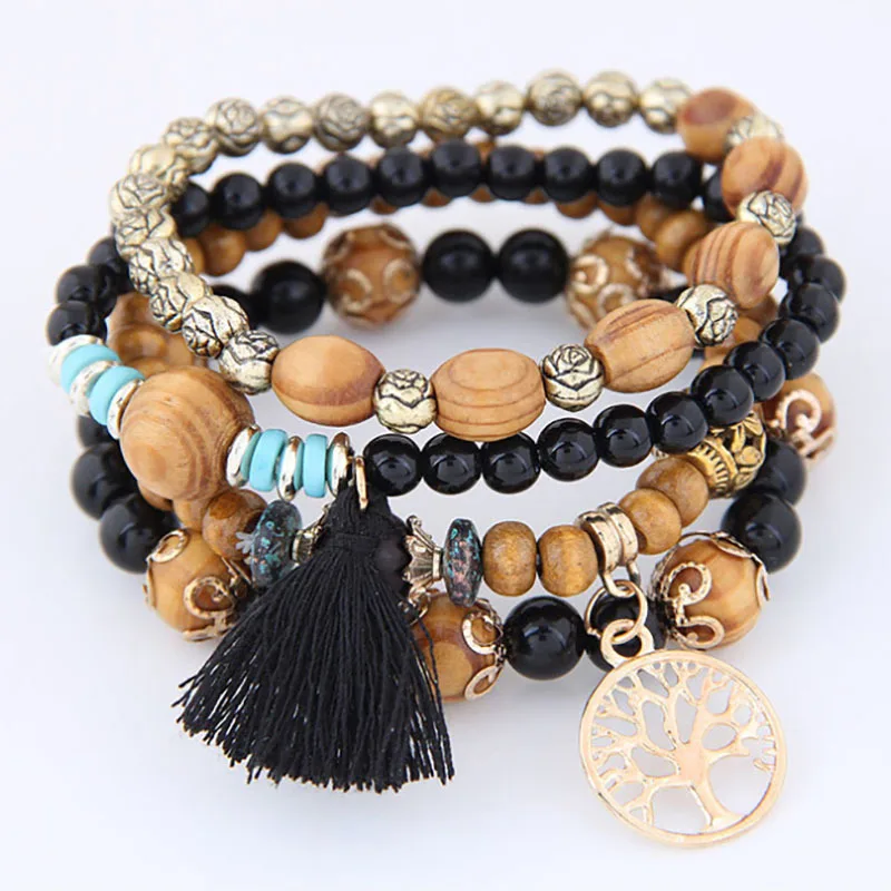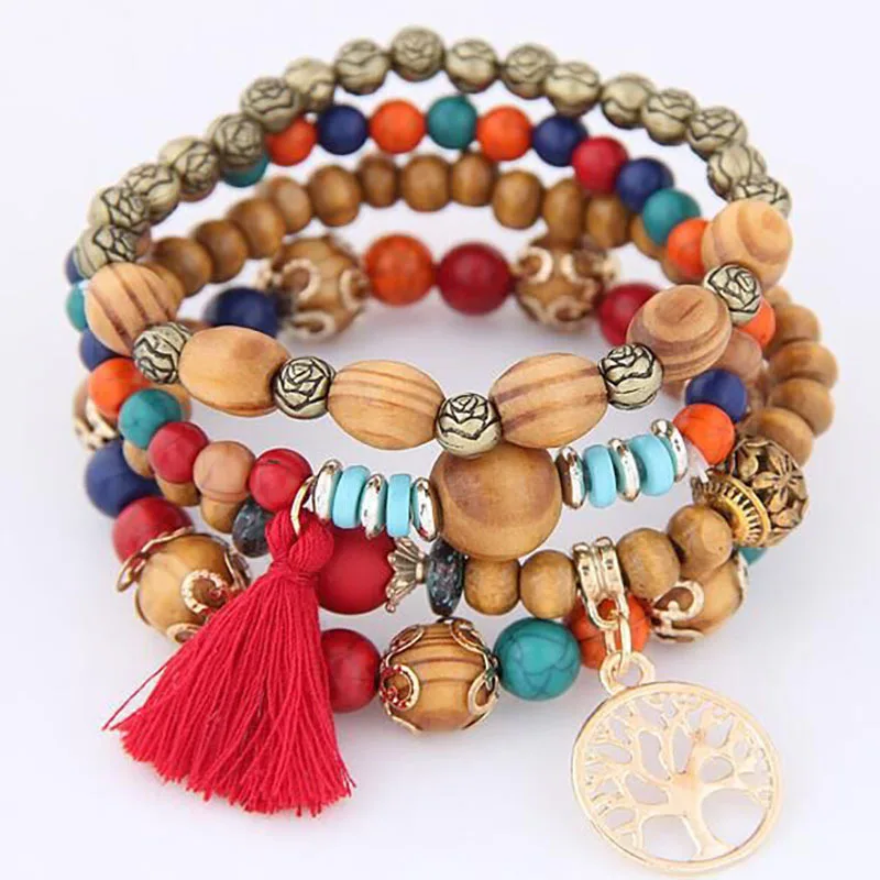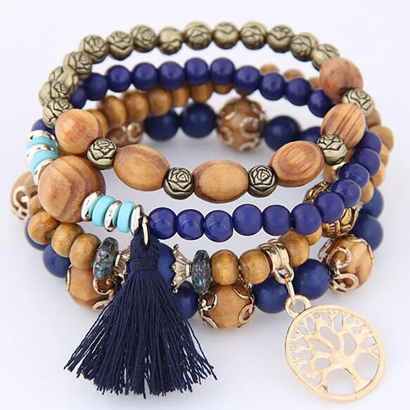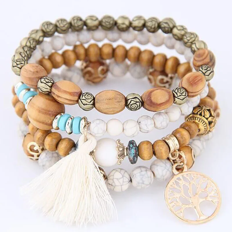 Best Find Me 2019 new brand Fashion Vintage Ethnic big beads Bracelet Boho multilayer stone Bangle & Bra