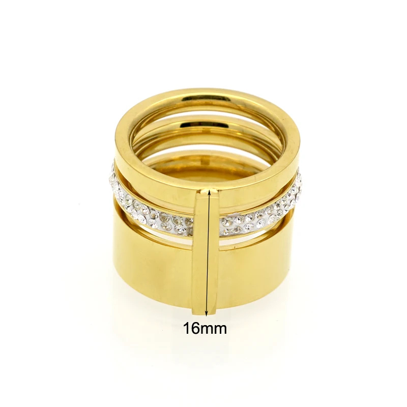 Best Gold Color Zircon Crystal Titanium Stainless Steel Rings For Women Men Wedding Jewelry Three Layers