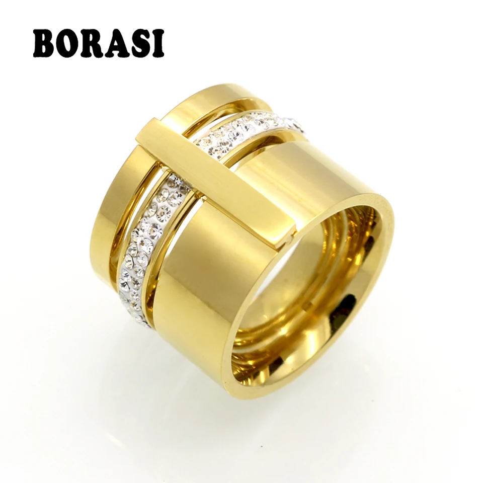 Buy Gold Color Zircon Crystal Titanium Stainless Steel Rings For Women Men Wedding Jewelry Three Layers