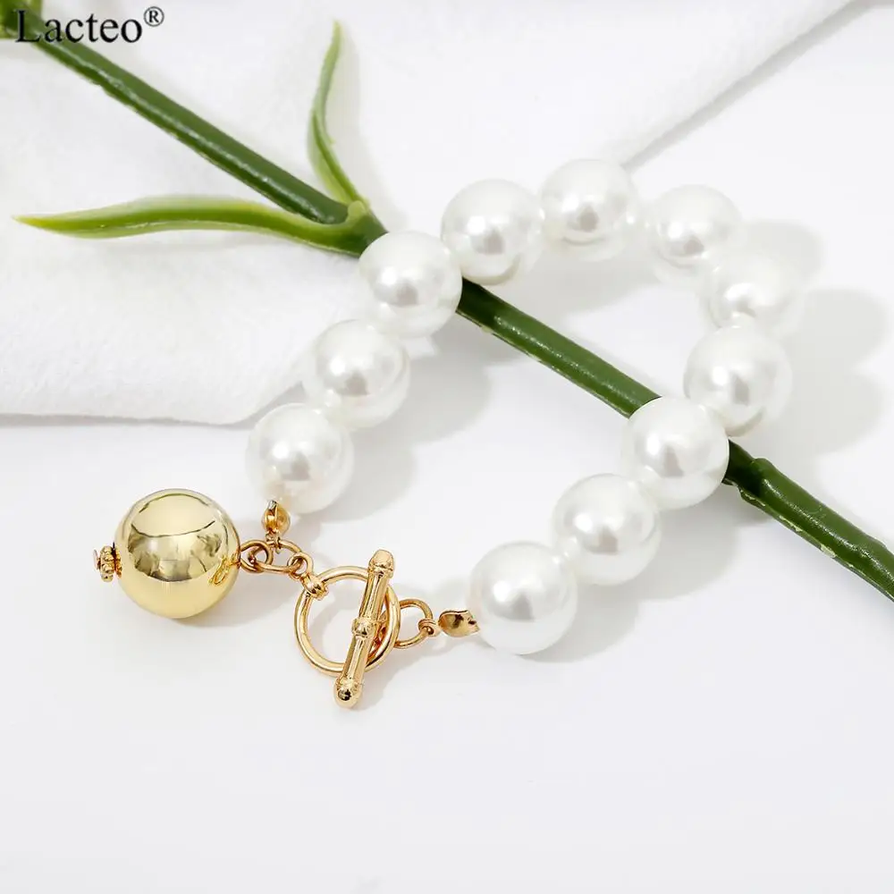 Best Lacteo Simple Korean Golden Lasso Bracelets Bangles for Women Statement 2019 Imitation Pearl Charm