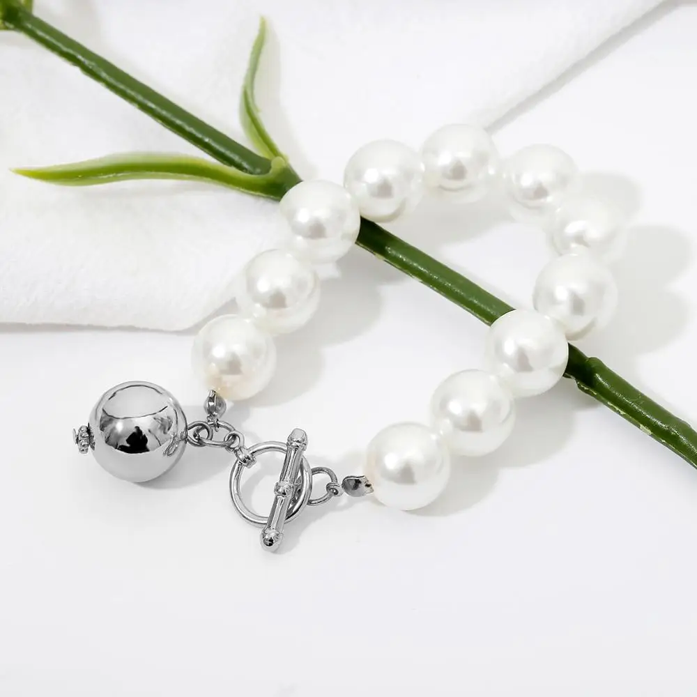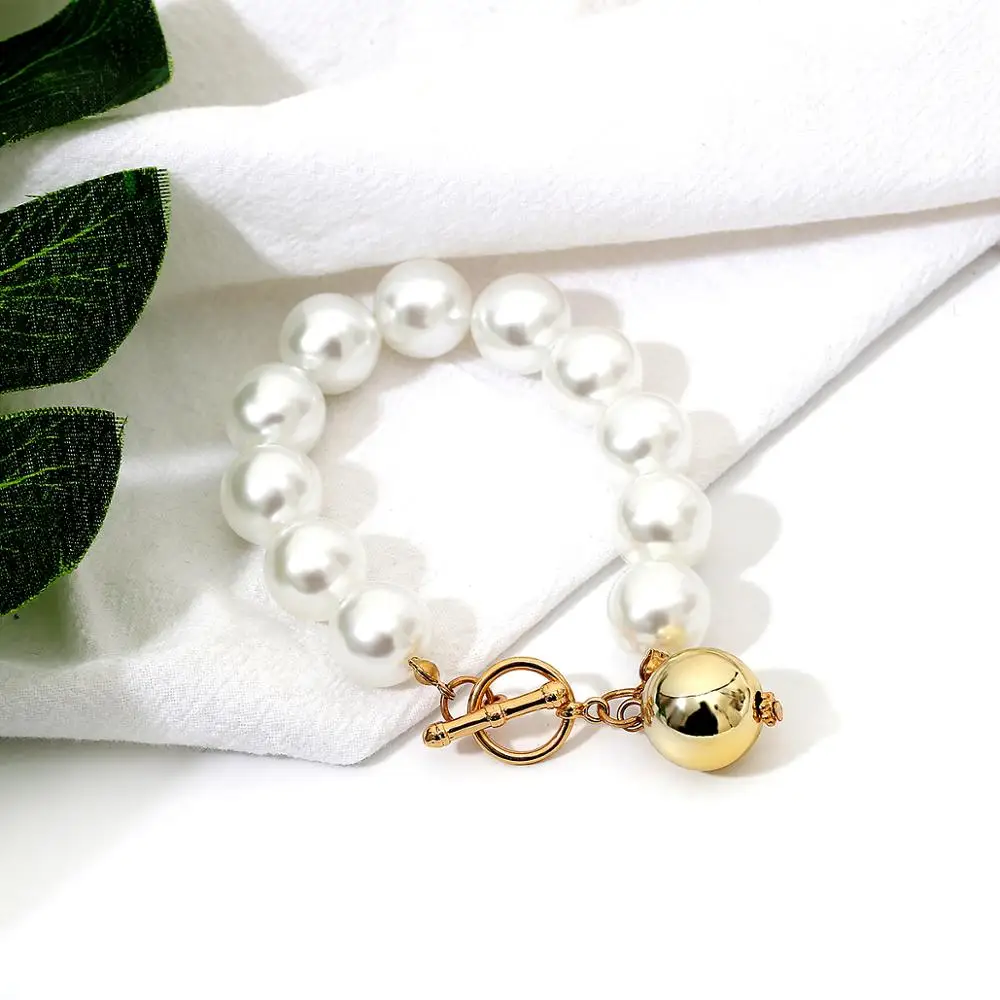 Promo Lacteo Simple Korean Golden Lasso Bracelets Bangles for Women Statement 2019 Imitation Pearl Charm