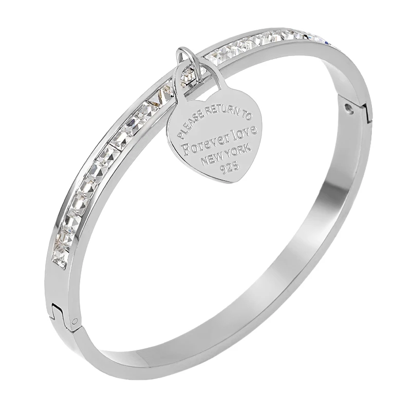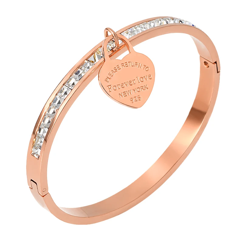 Best Trendy Stainless Steel CZ Lover's Bracelets Bangles for Women Crystal Gold Plating Cuff Wristband T