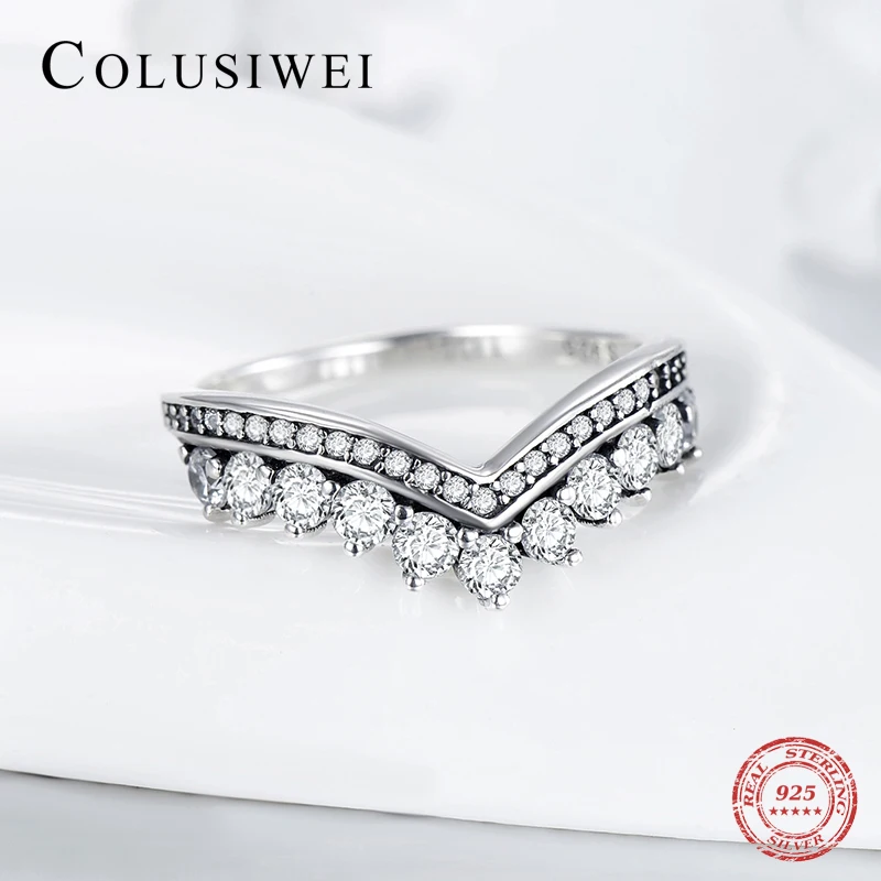 Buy 2019 New Sale Real 925 Sterling Silver Water Drop Clear CZ Stackable Classic Ring Luxury Brand Crow