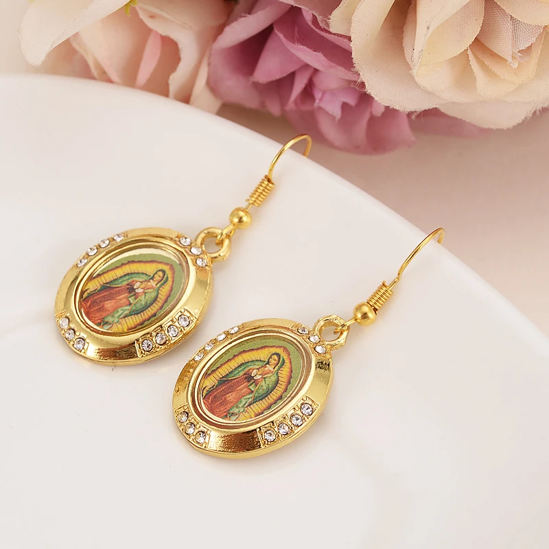 Promo Gold Virgin Mary religions Jewelry Set Trendy Our Lady Women Men party czJewelry Cross Pendant earr