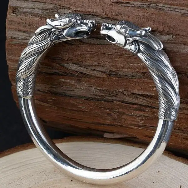 New Handmade 100% 990 Siver Dragon Bangle Real Pure Silver Power Dragon Bangle Vintage Sterling Silver