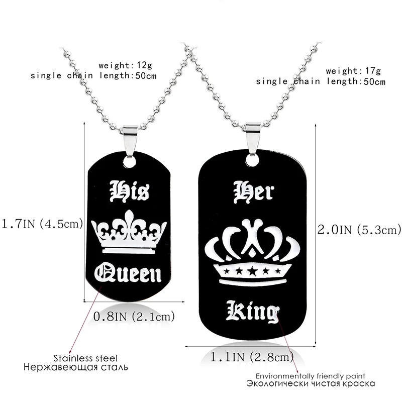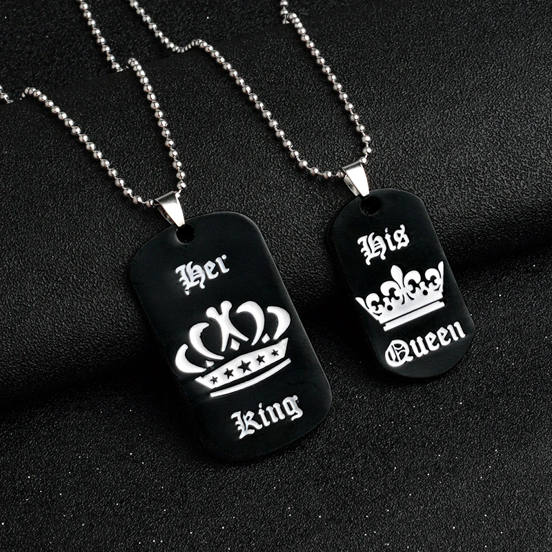 Promo Jewelry personalized her king his queen engraved letters black dog label necklace couple Valentine'