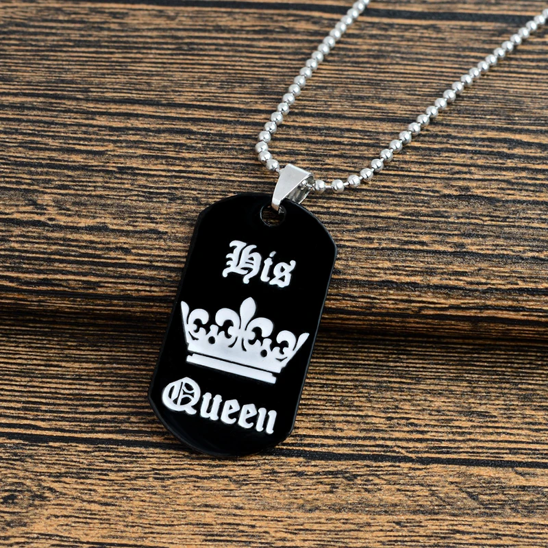 Buy Jewelry personalized her king his queen engraved letters black dog label necklace couple Valentine'