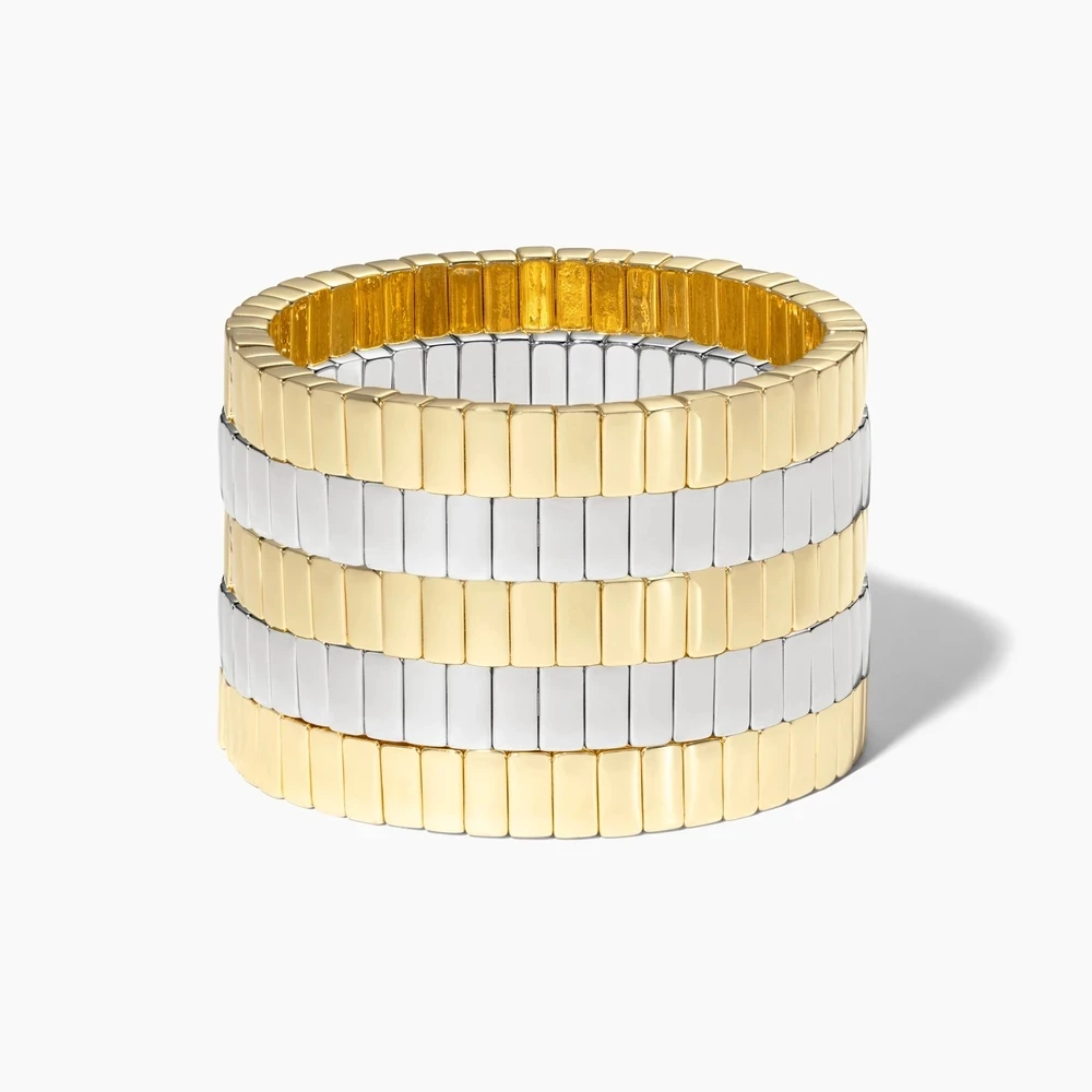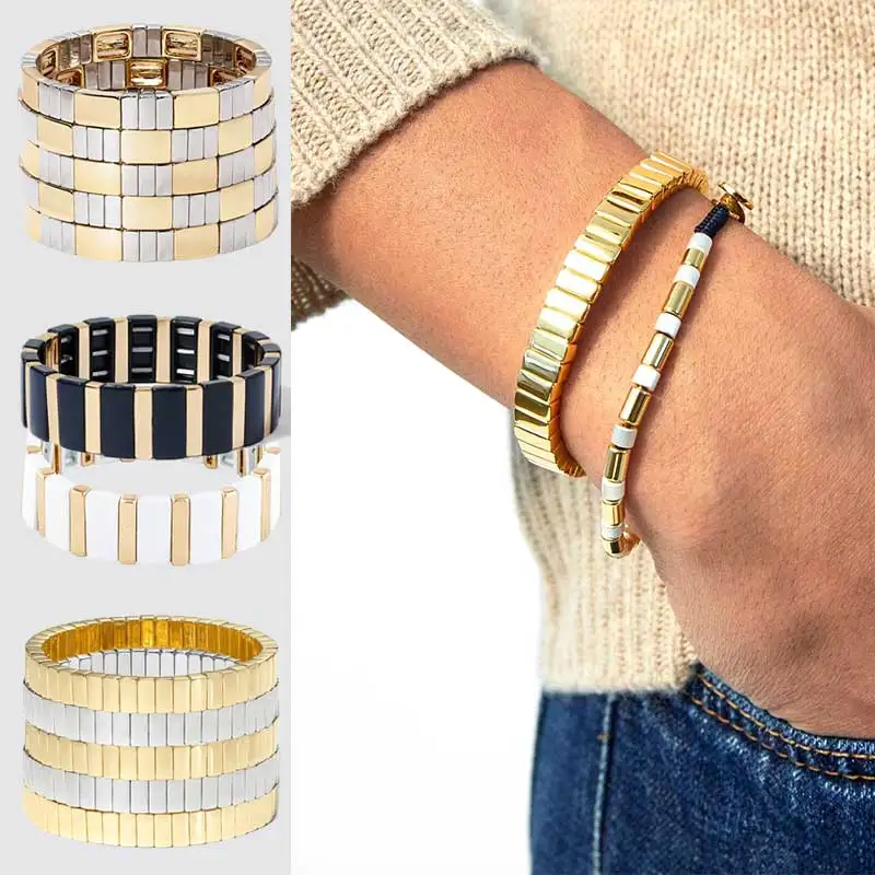 Buy JUST FEEL Gold Silver Color Stretch Bracelet Bangles For Women Enamel Tile Stackable Wristband Cuff