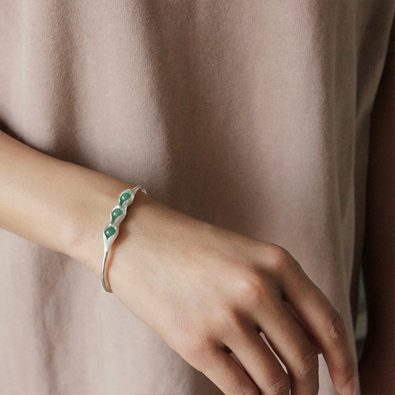Promo Lotus Fun Real 925 Sterling Silver Handmade Jewelry Natural Green Stones Creative Pea Pods Design B