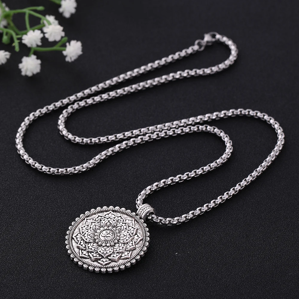 Buy My shape Viking Necklaces Flower of Life Dome Sacred Geometry Women Om Yoga Chakra Pendant Mandala