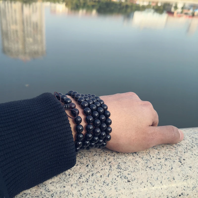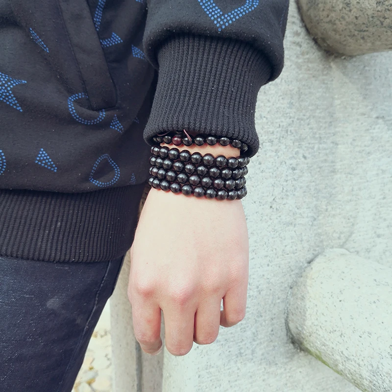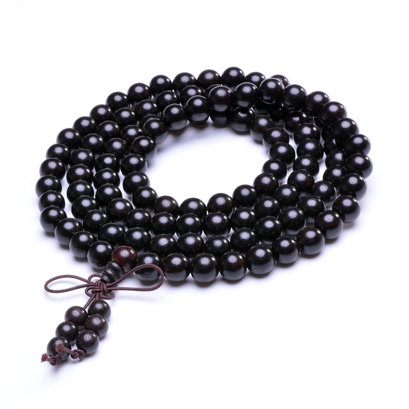 Buy Natural Ebony Tibetan Buddha Mala Bracelet wooden 108 Bead necklace Black Charm Multilayer Bracelet