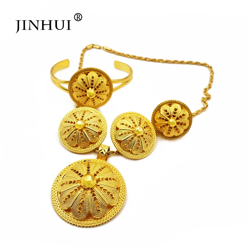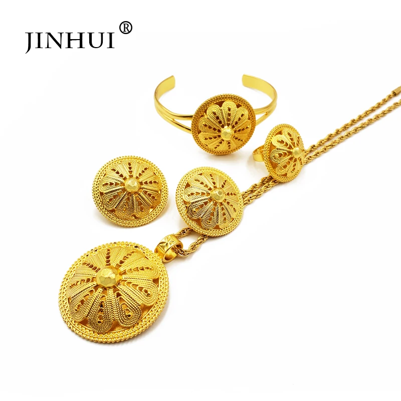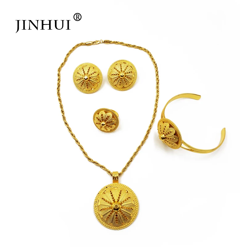 Buy New Ethiopian jewelry sets Bracelet Necklace Earring Ring Gold gifts for women dubai African Eritre