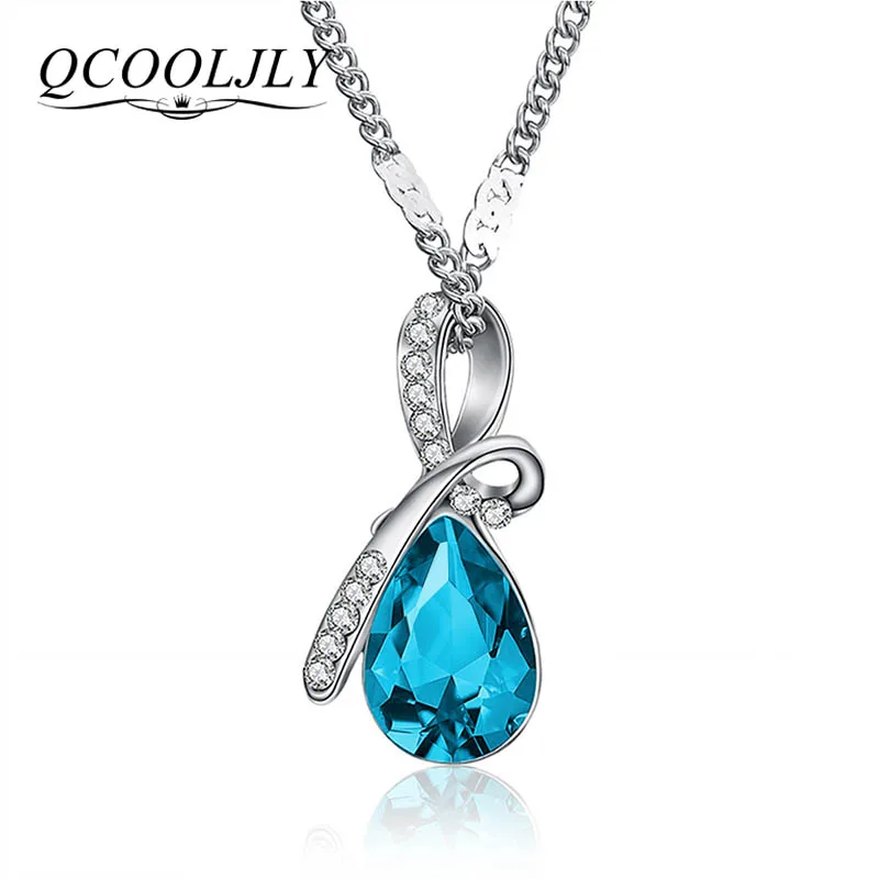 Buy QCOOLJLY 2019 Hot 10 Colors Austrian Crystal Pendants Necklace Jewellery Women Fashion Wedding Part