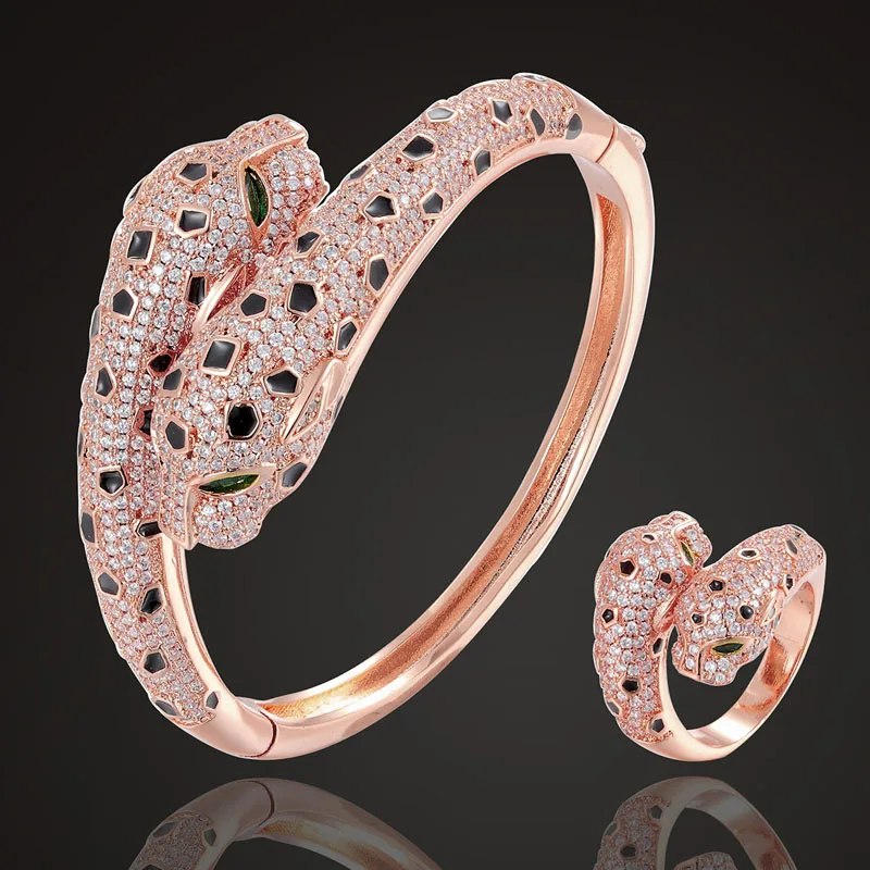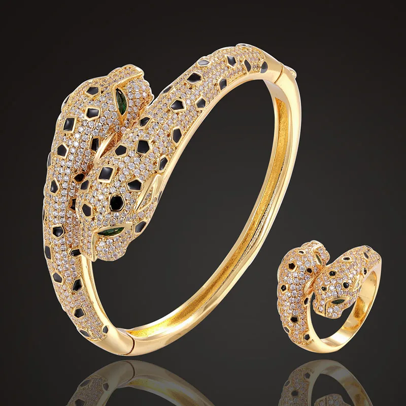Buy Zlxgirl jet Enamel leopard Animal bangle with ring jewelry sets cubic zircon wedding bangle & brace