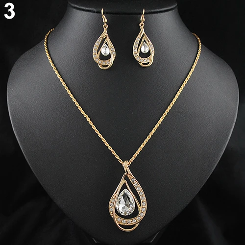 Best Banquet Party Jewelry Set Waterdrop Crystal Stone Earrings Pendant Necklace Golden Chain dubai jewe