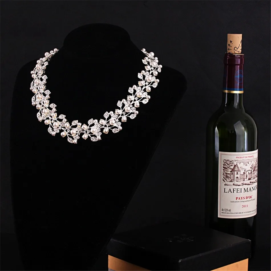 Best CC wedding jewelry For Women Bridal Pearl & Crystal Necklace Earring Sets Beautiful Flower Shape De