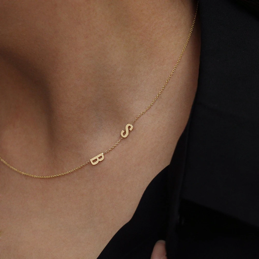 New Cute Double Letters Necklace Stainless Steel Jewelry Personalized Mini Two Initials Custom Chain Ne
