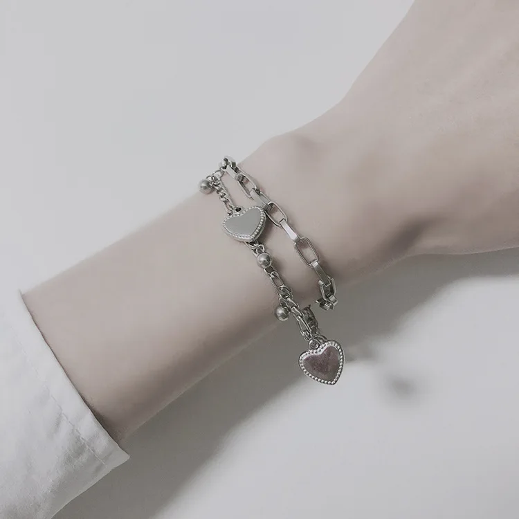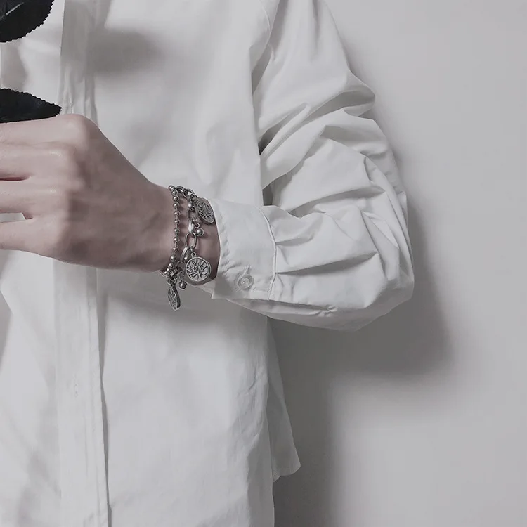 New HUANZHI 2019 Life Tree Jesus Heart Bell Pendant Cross Metal Chain Bead Metallic Hip Hop Bracelet Ba