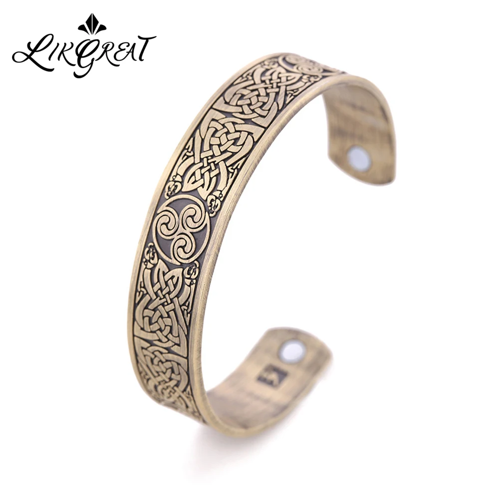 Promo LIKGREAT Triple Spiral Celtics Knot Engraved Bangle Health Care Magnetic Cuff Bracelets for Men Wom