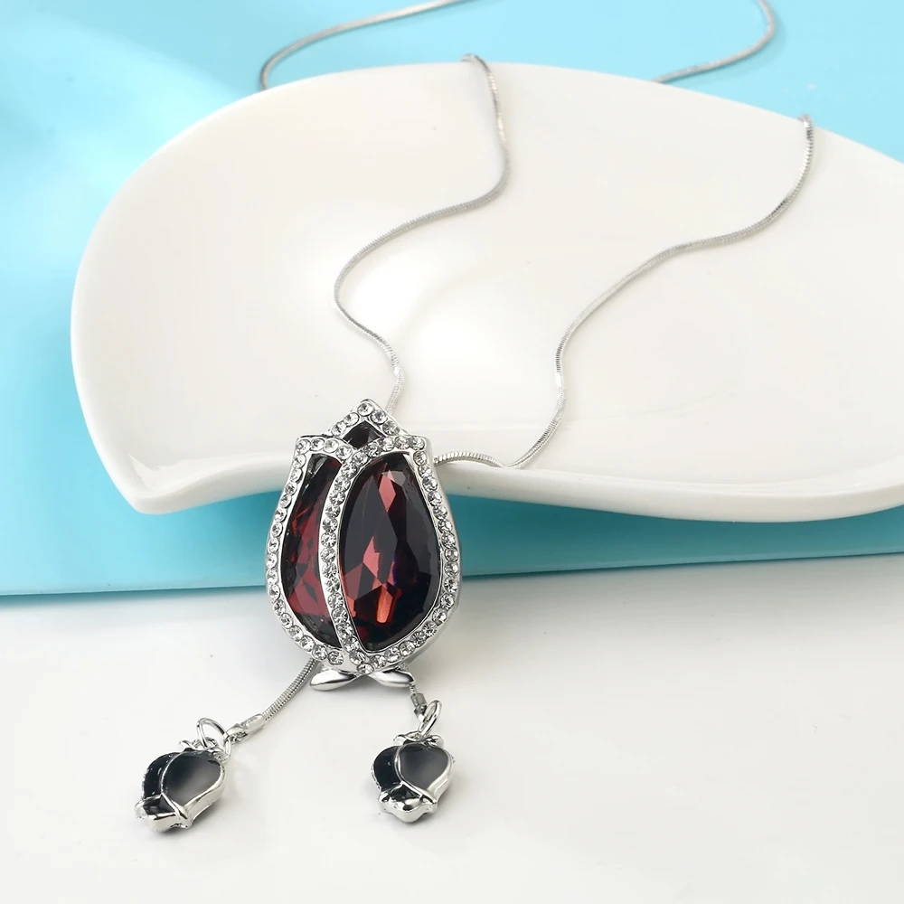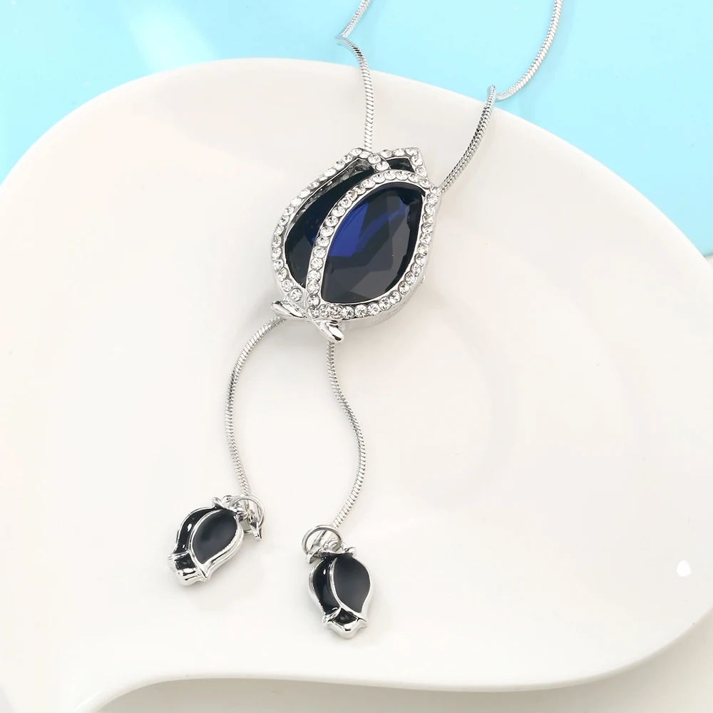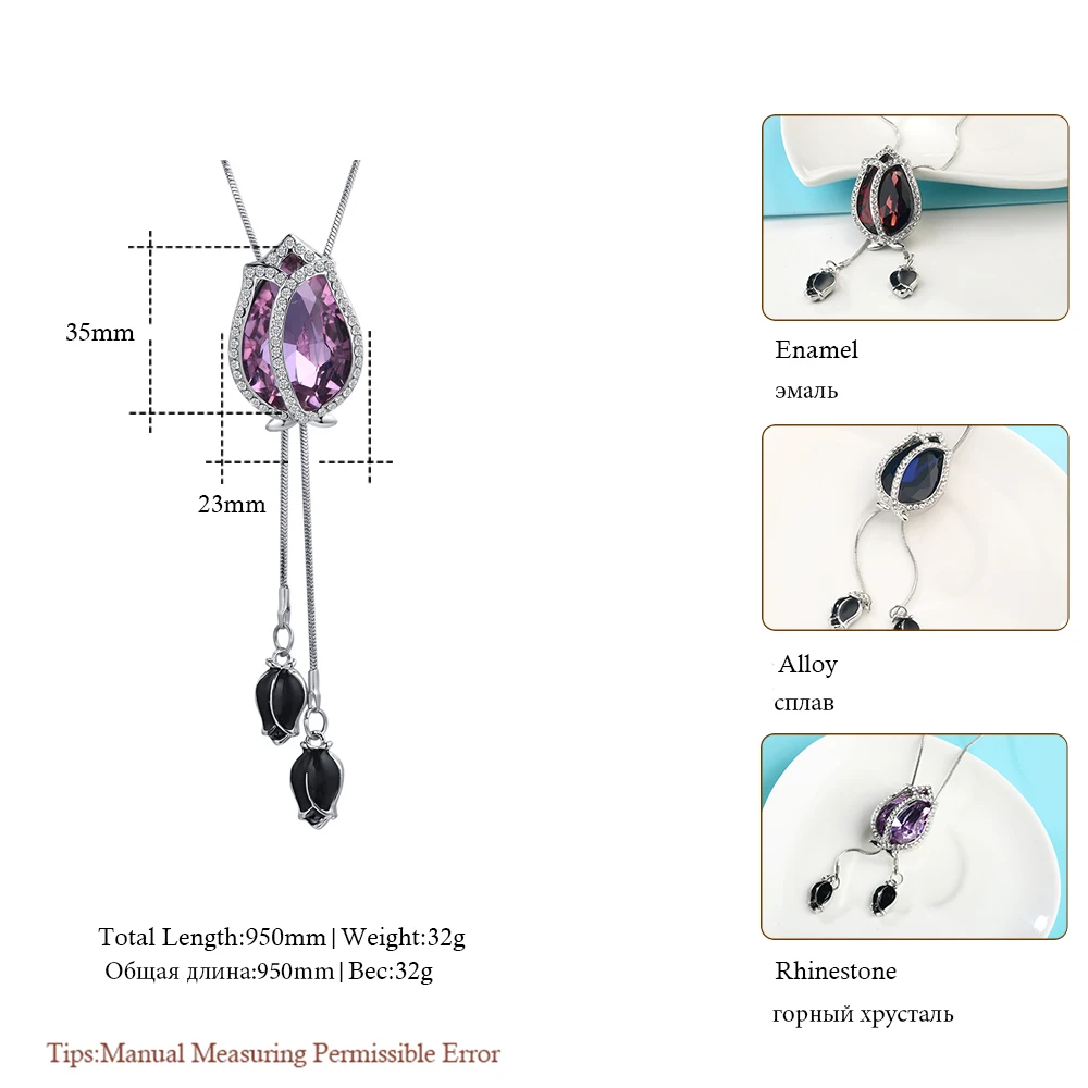 Buy Meyfflin Tulip Flower Crystal Necklace for Women Fashion Silver Color Chain Long Necklaces & Pendan