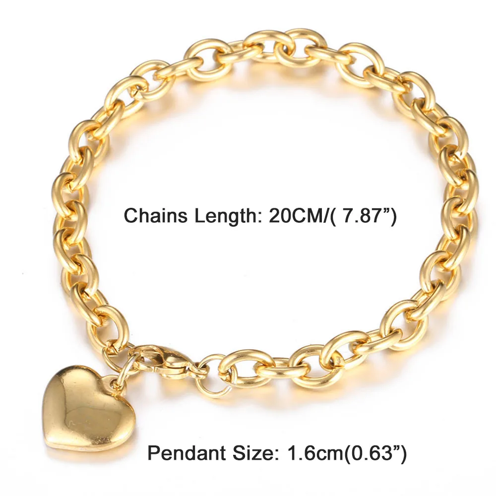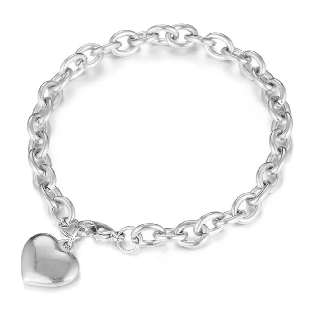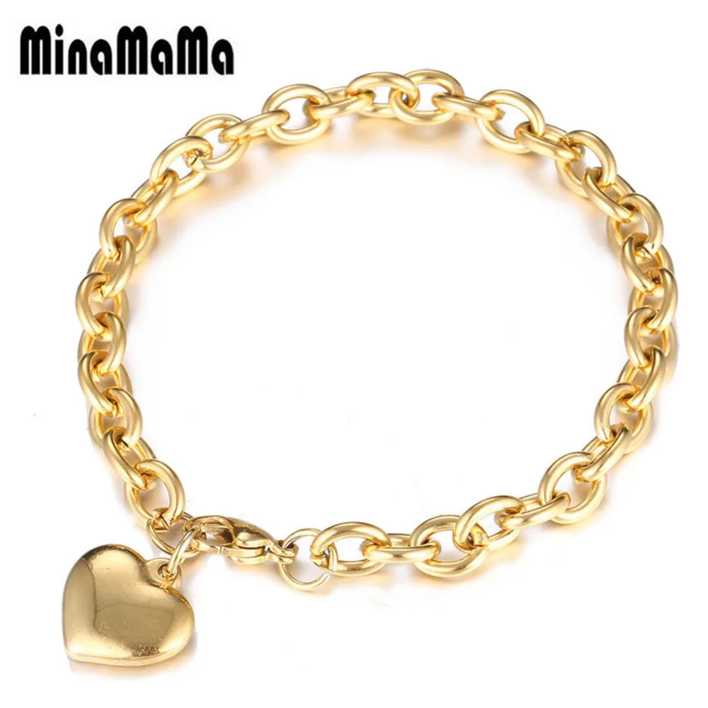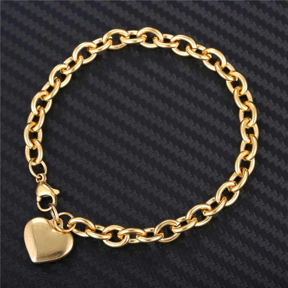 New Personality Simple Blank Heart Bracelets Gold Color Stainless Steel Heart Charms Bracelets For Wome