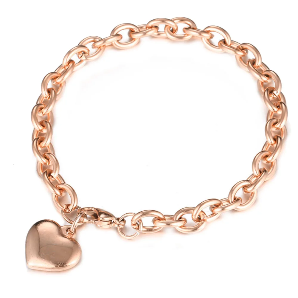 Best Personality Simple Blank Heart Bracelets Gold Color Stainless Steel Heart Charms Bracelets For Wome