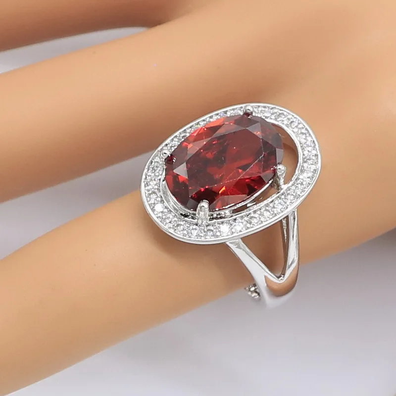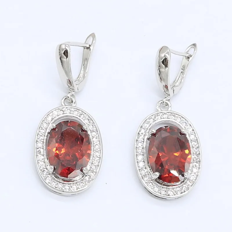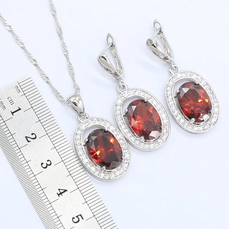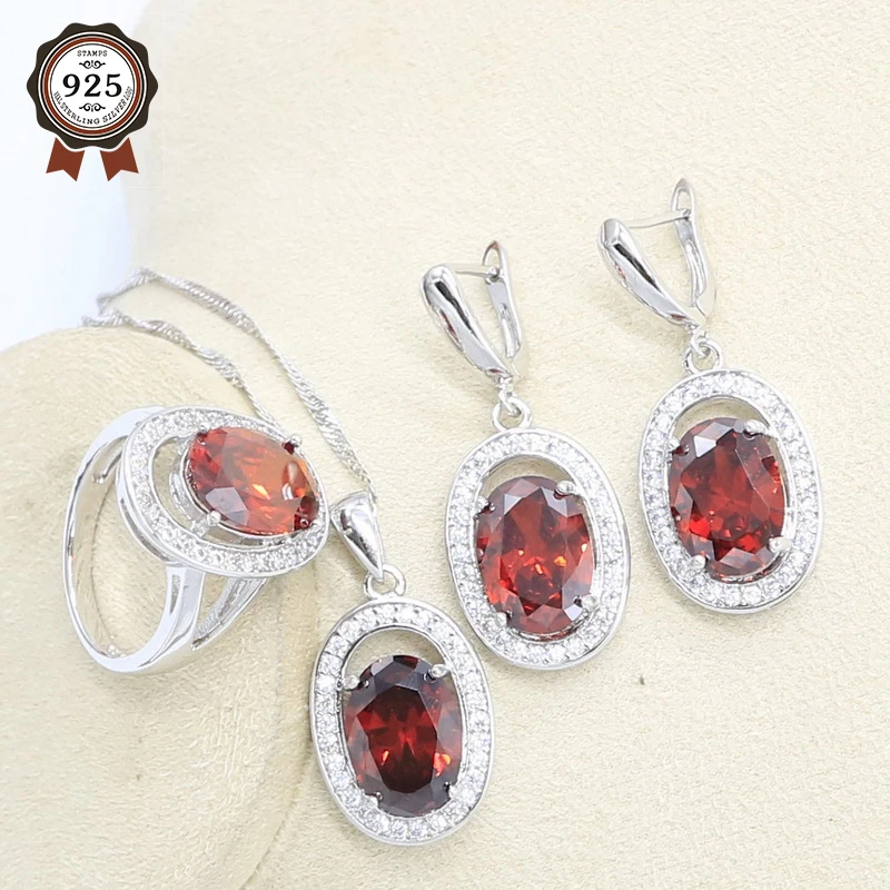 Buy Red Zircon 925 Silver Jewelry Set for Women Earrings Necklace Pendant Ring Birthday Gift