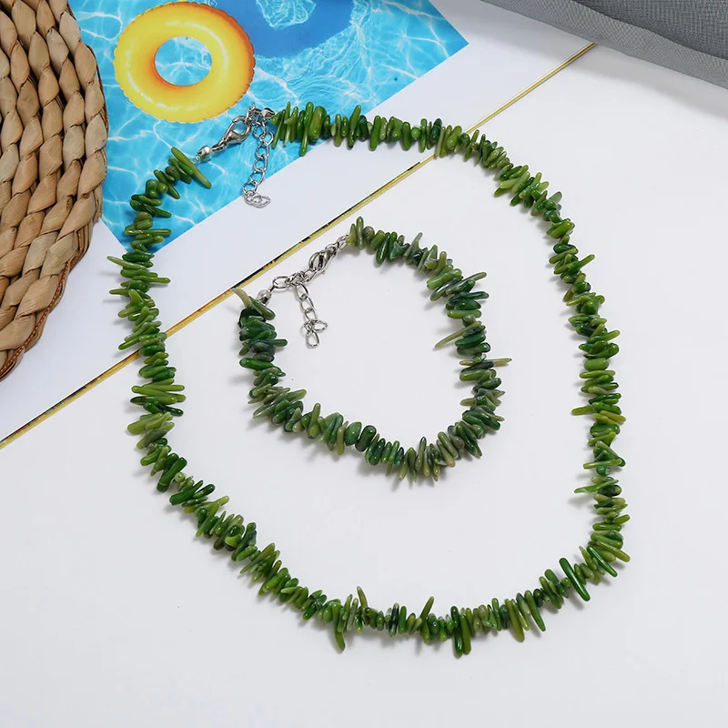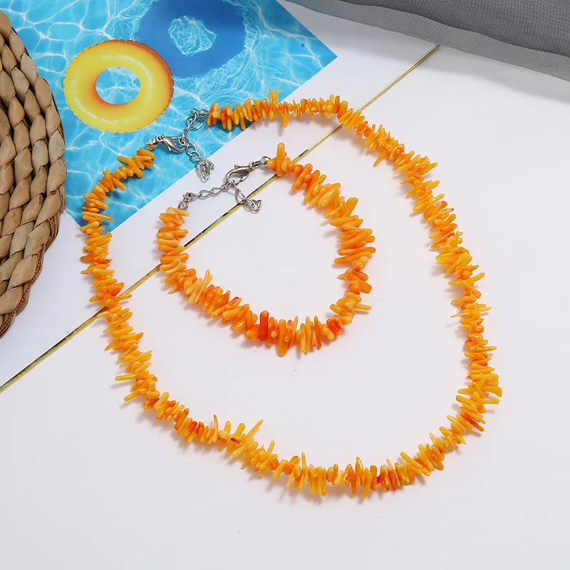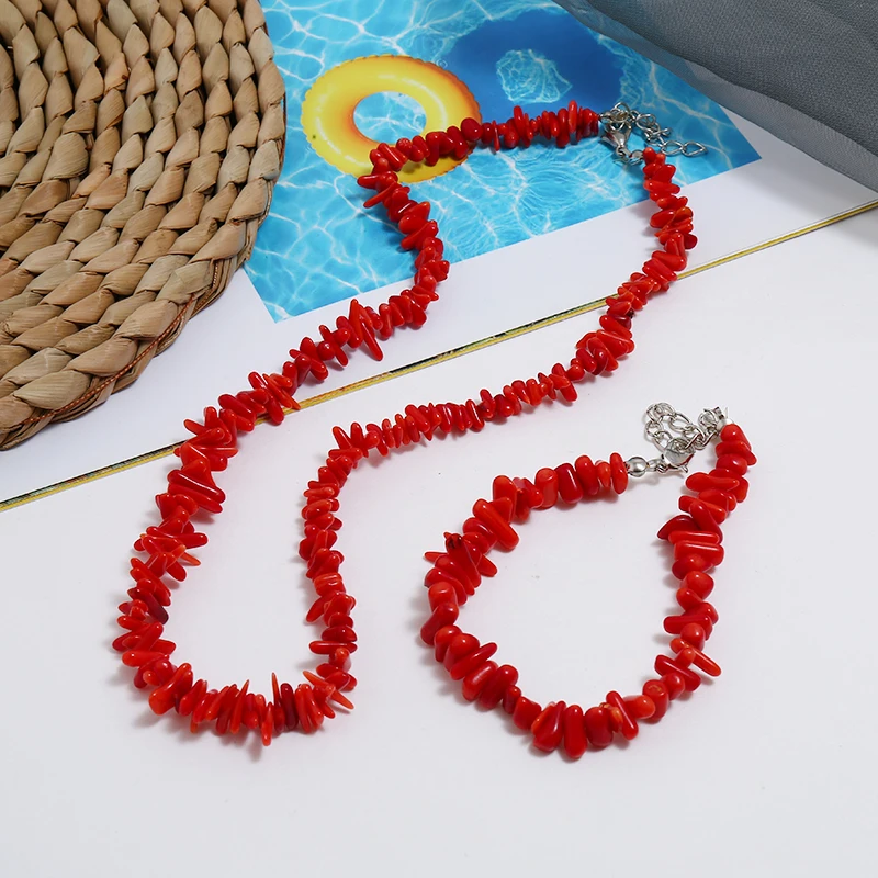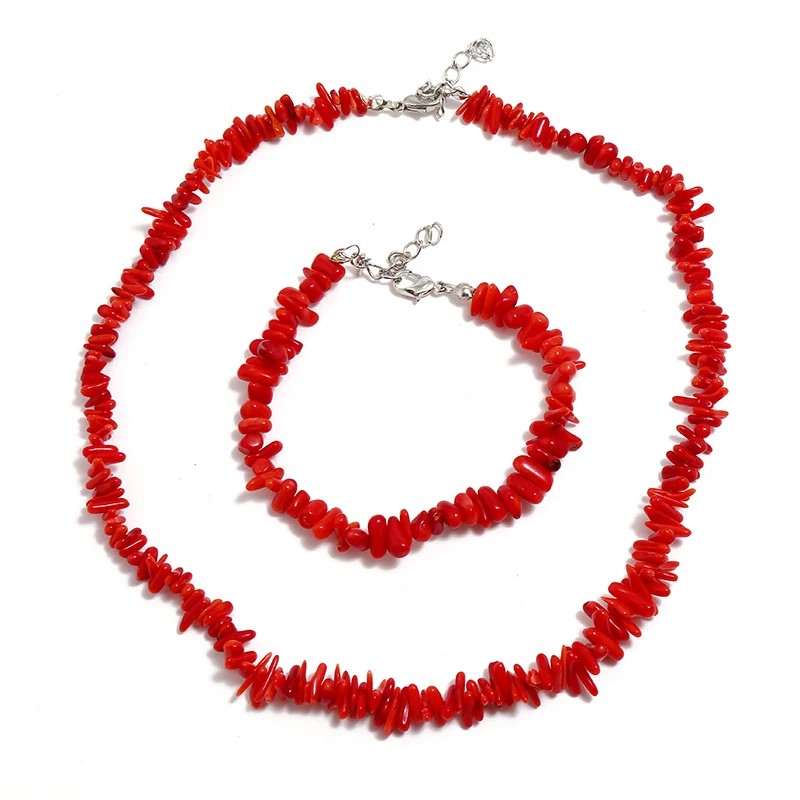 Promo Vintage Irregular Coral Jewelry Sets Silver Chocker Necklace Bracelet String Bracelet Wedding Brida