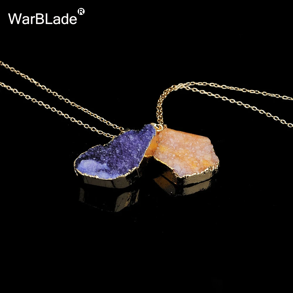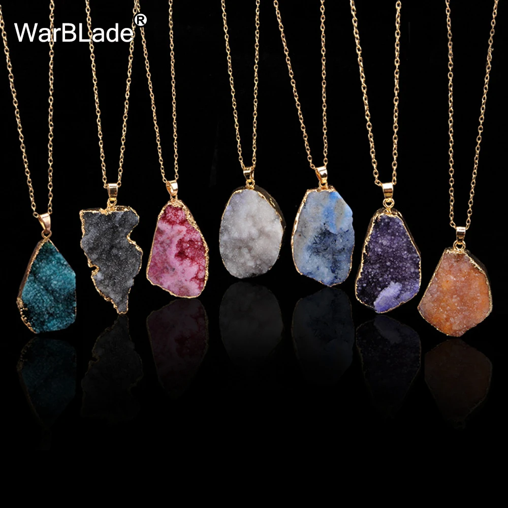 New WarBLade New Natural Stone Quartz Pendant Necklace Colorful Irregular Drusy Gold Color Stone Neckla