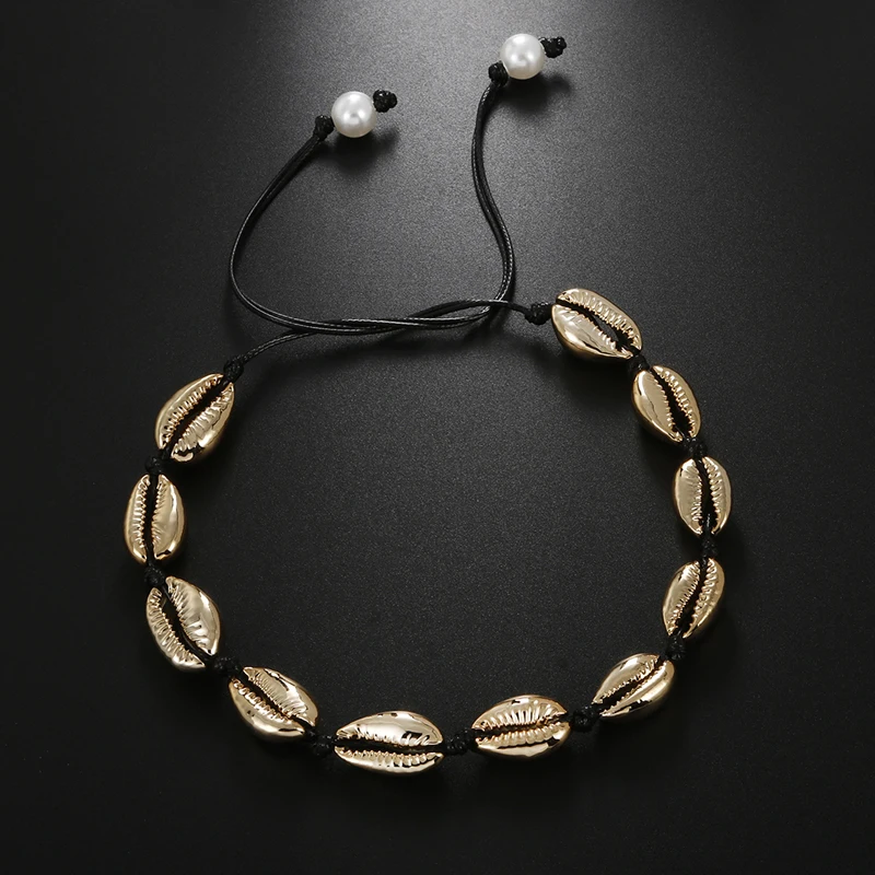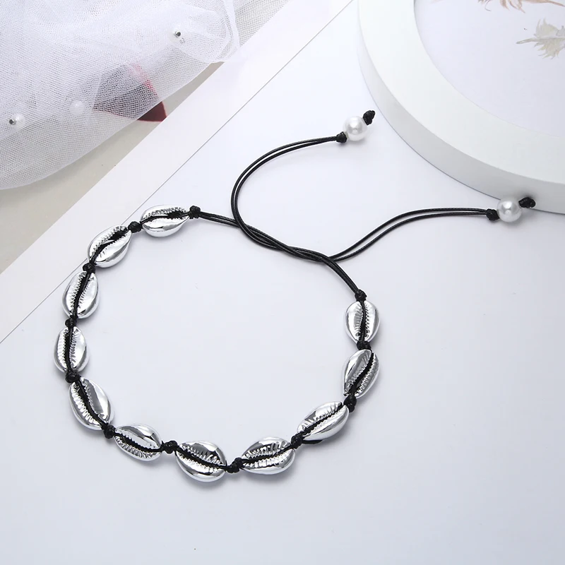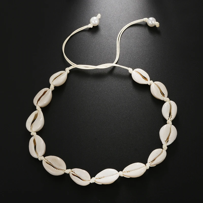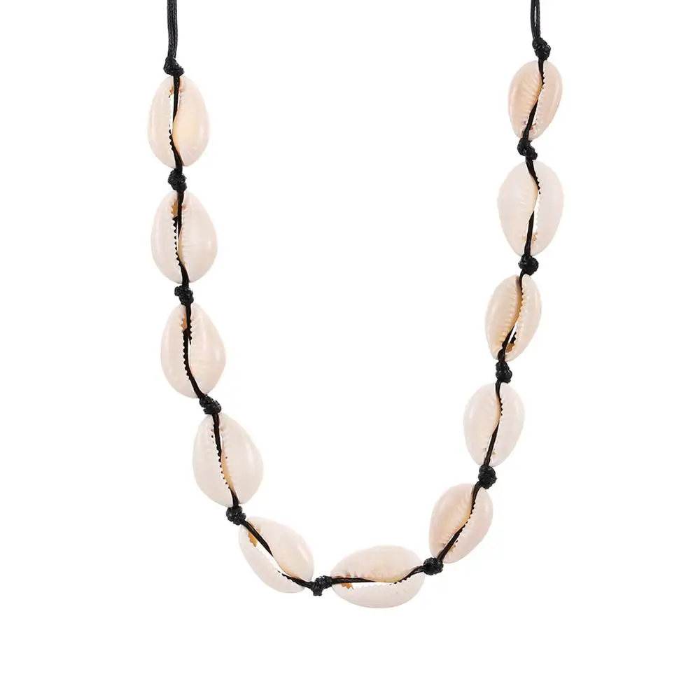 New Women Beach Jewelry Bohemian Sea Whtie Black Rope Necklace Fashion Handmade Natural Shell Adjustabl