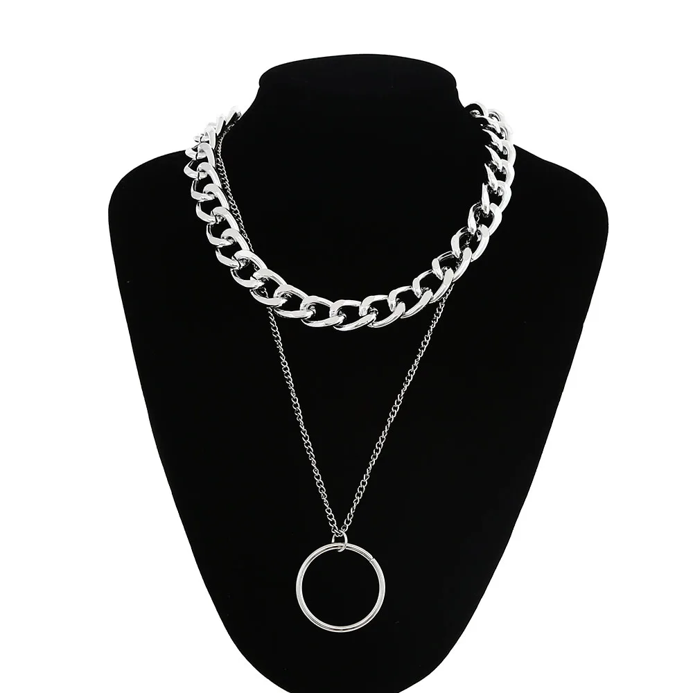 Promo 2019 New Chain necklace women/men punk rock circle pendant necklace Vintage emo grunge Goth jewelry