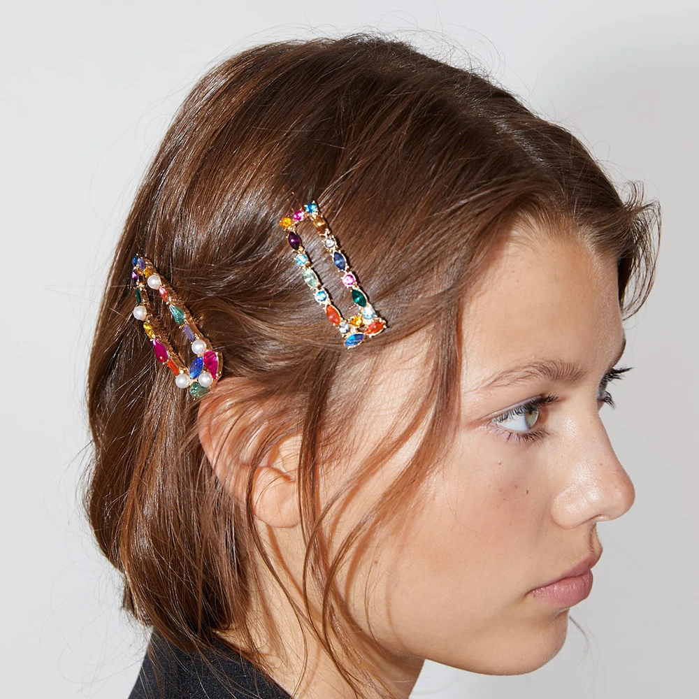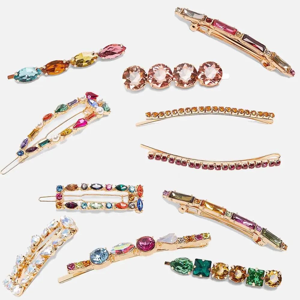 Promo 2019 new ZA Fashion Women Colorful Crystal Barrettes Set Bridal Rhinestone Hair Clip Pins Wedding P