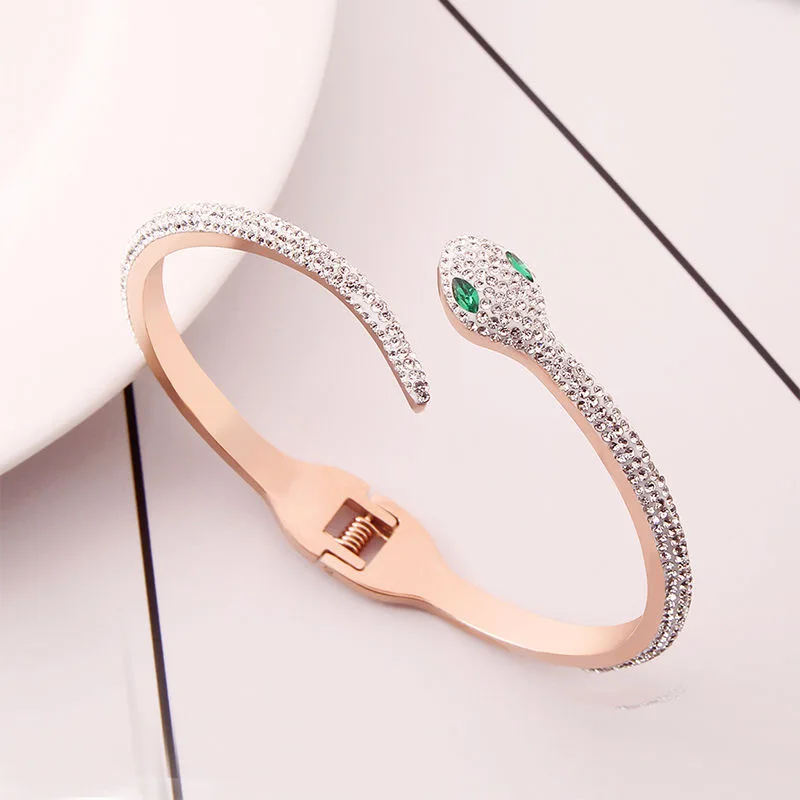 Best 316 Stainless Steel Rose Gold Czech women's bracelets Crystal Snake Bangle Cuff Bracelet Fashion ch
