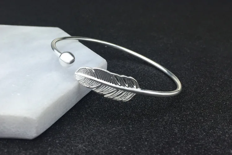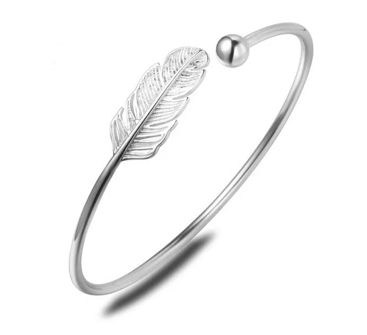Promo Fashion Silver Plated Adjustable Open Feather Cuff Bracelets & Bangles for Women Female Simple Jewe