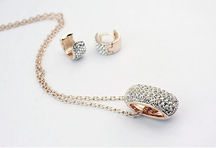 Promo New 2020 Hot Sell Crystal Jewelry Set gold-color Necklace Earring Jewelry Sets Fashion For Women